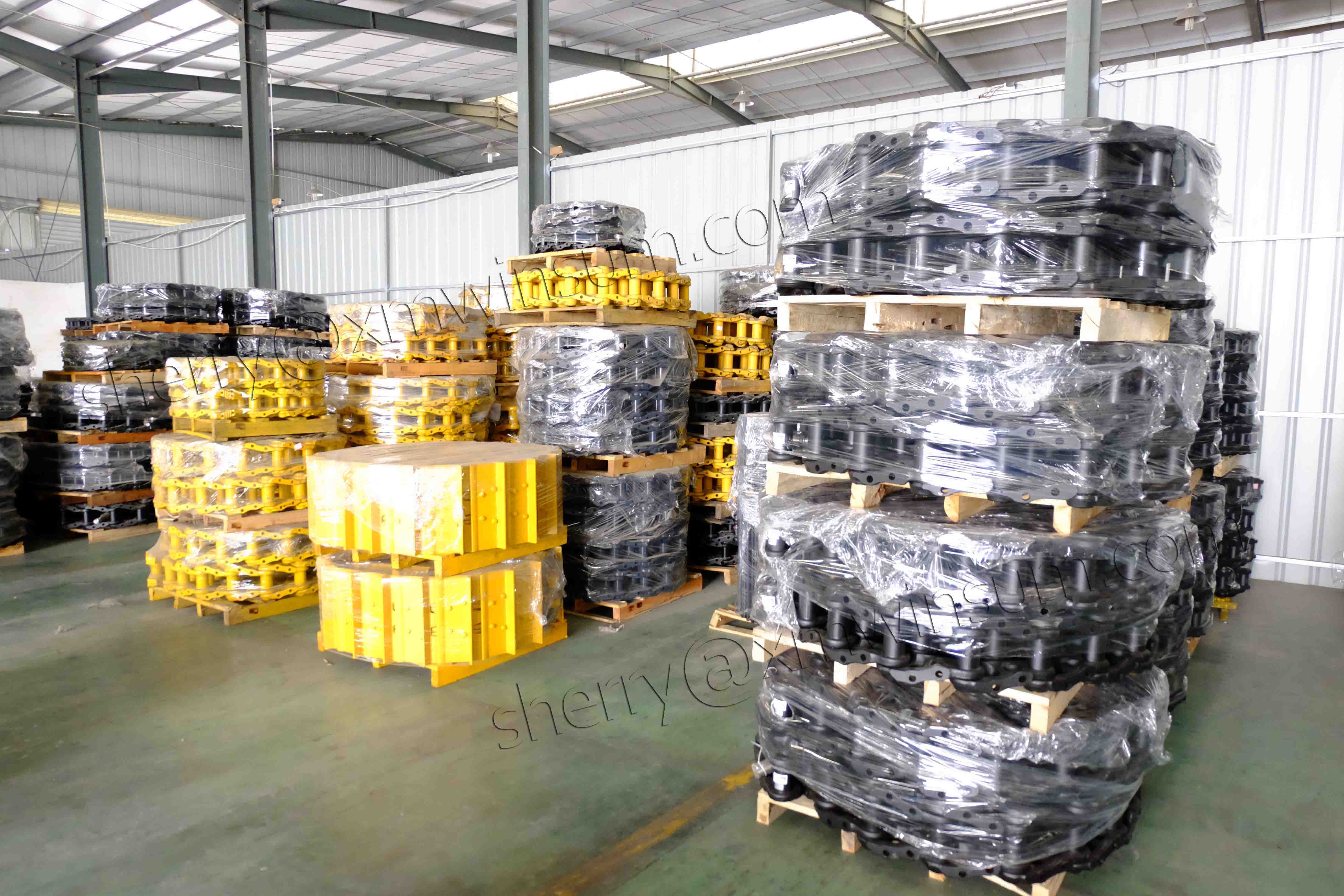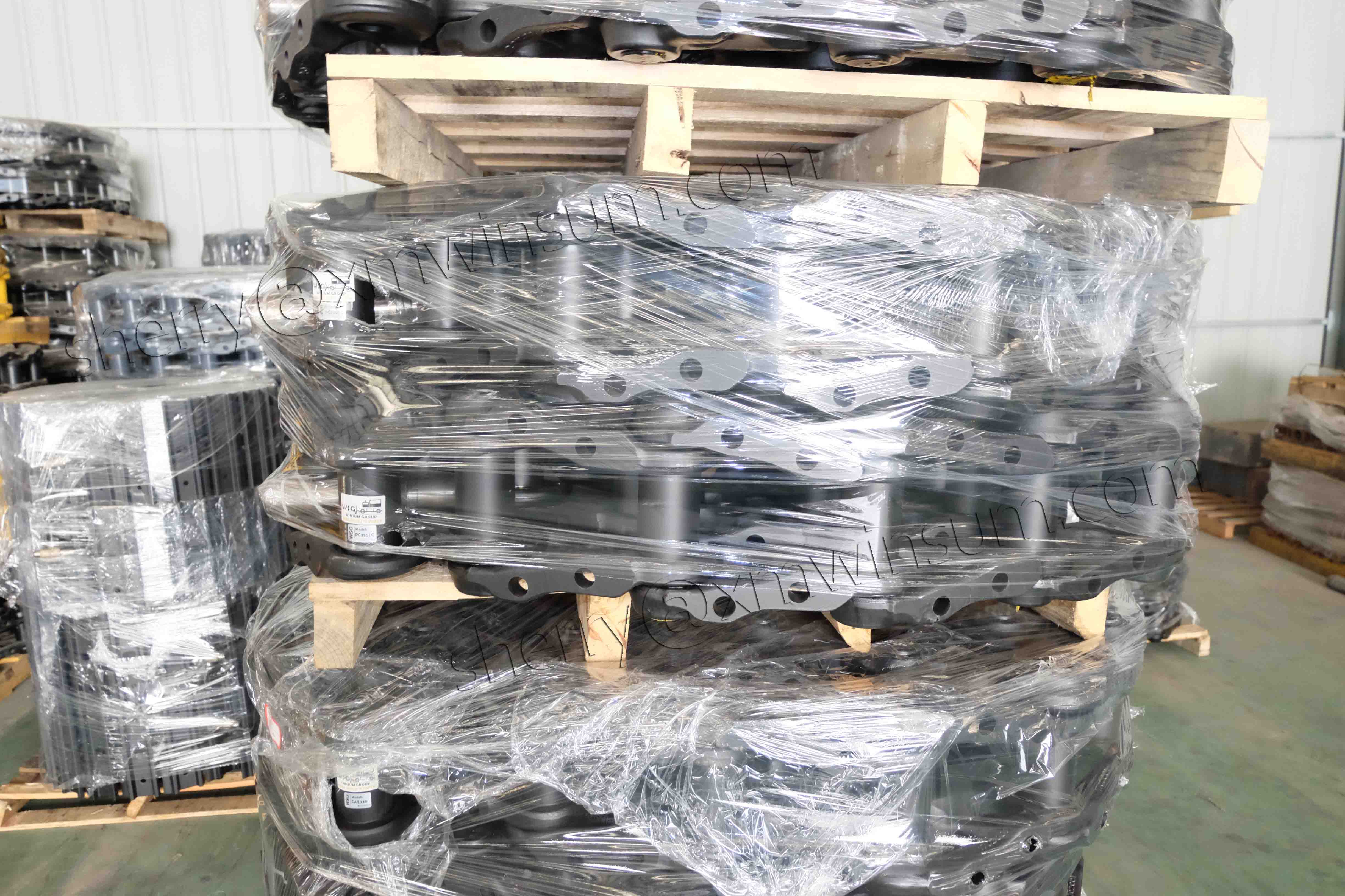 WSG excavator and bulldozer track roller in warehouse.